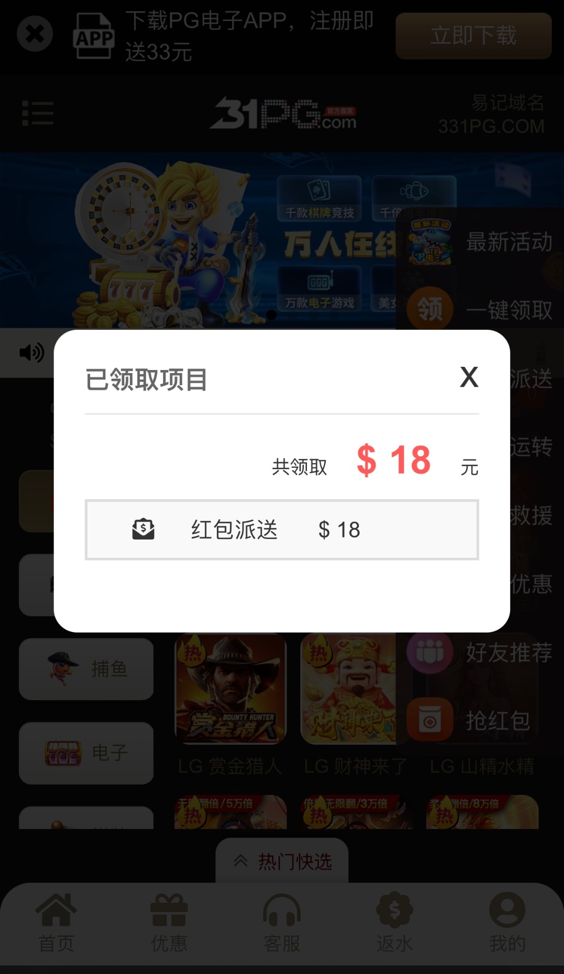 【31PG】—✅—神秘彩金弹窗