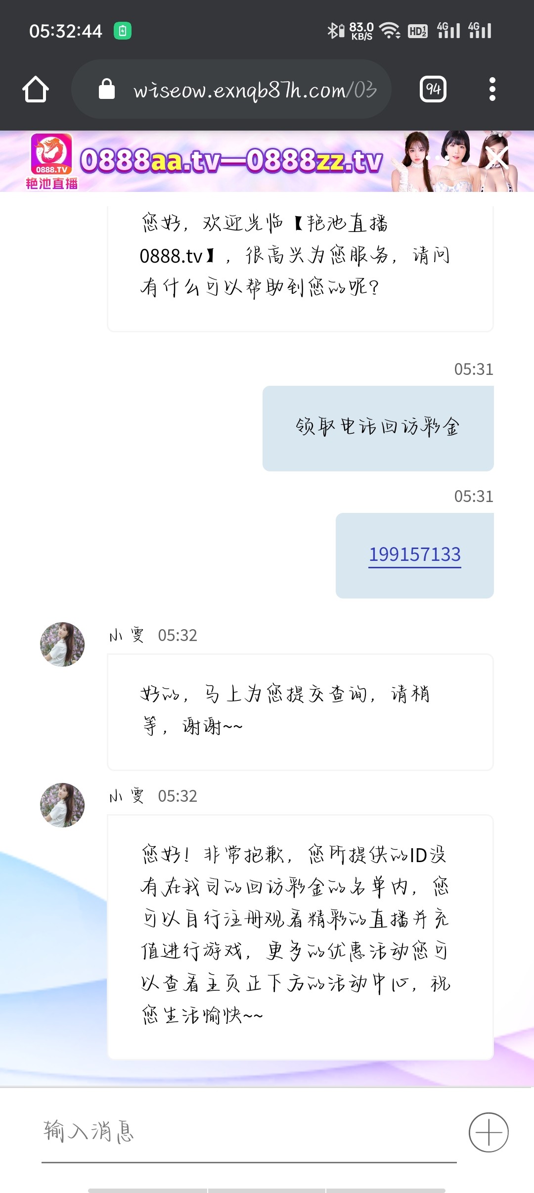 老用户登陆上去找客服申请电话回访彩金 要在他们回访名单才送(不送无视)我没碰到!